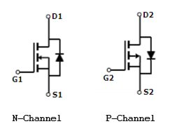 Два комплеменгтарных транзистора, n-MOSFET и p-MOSFET |